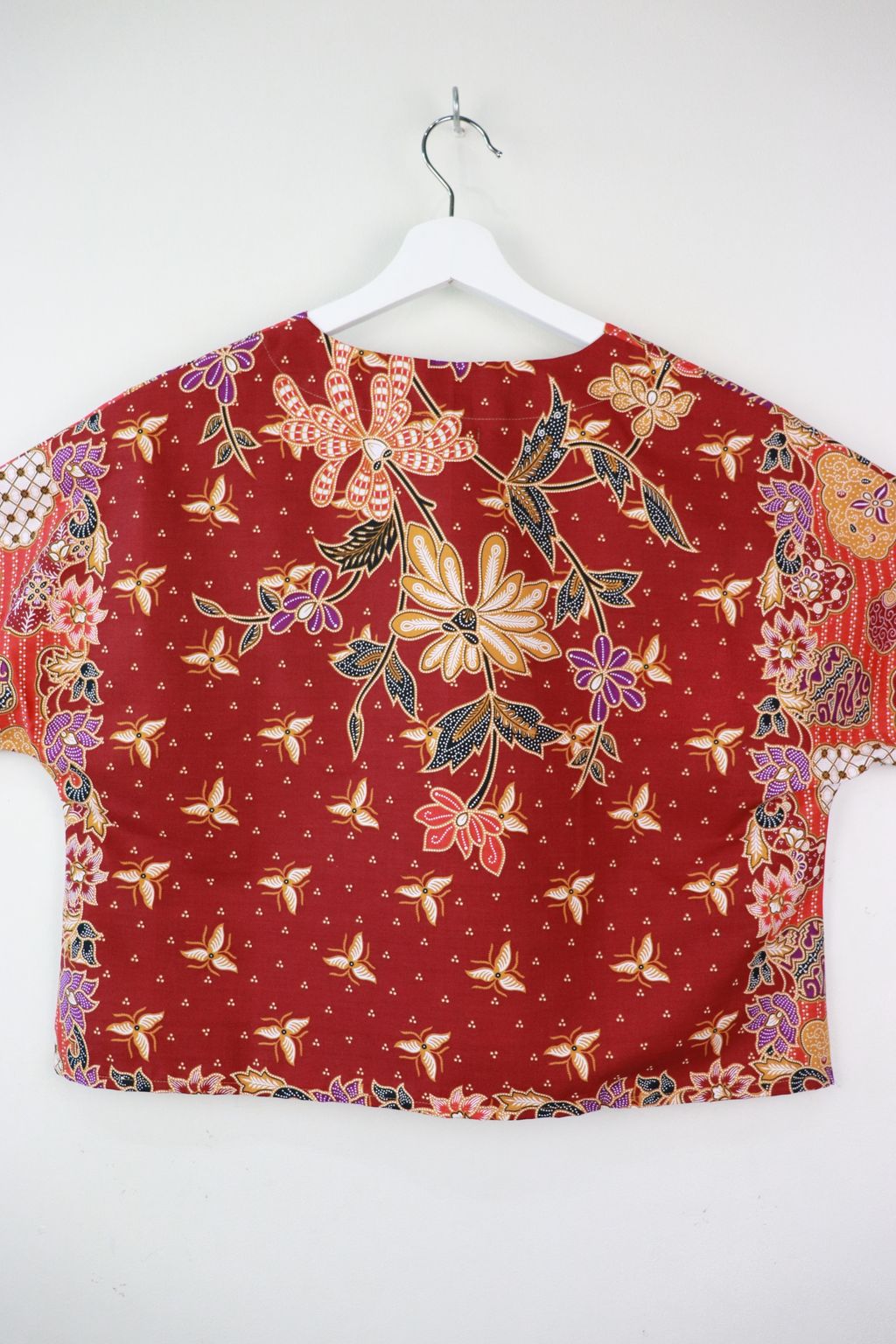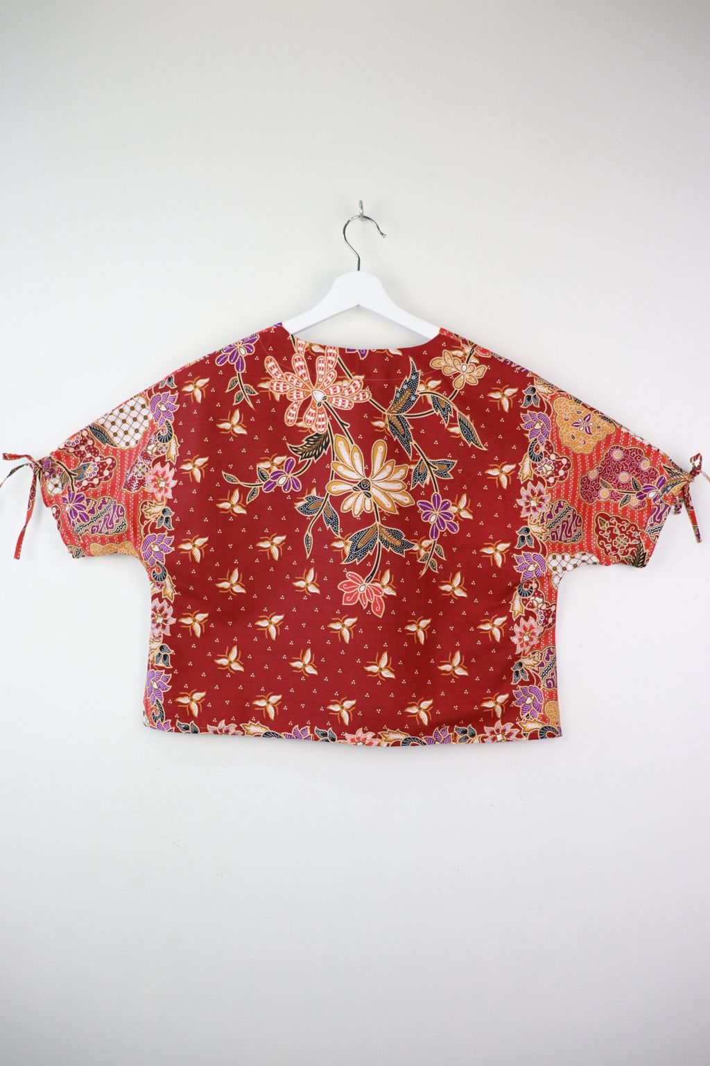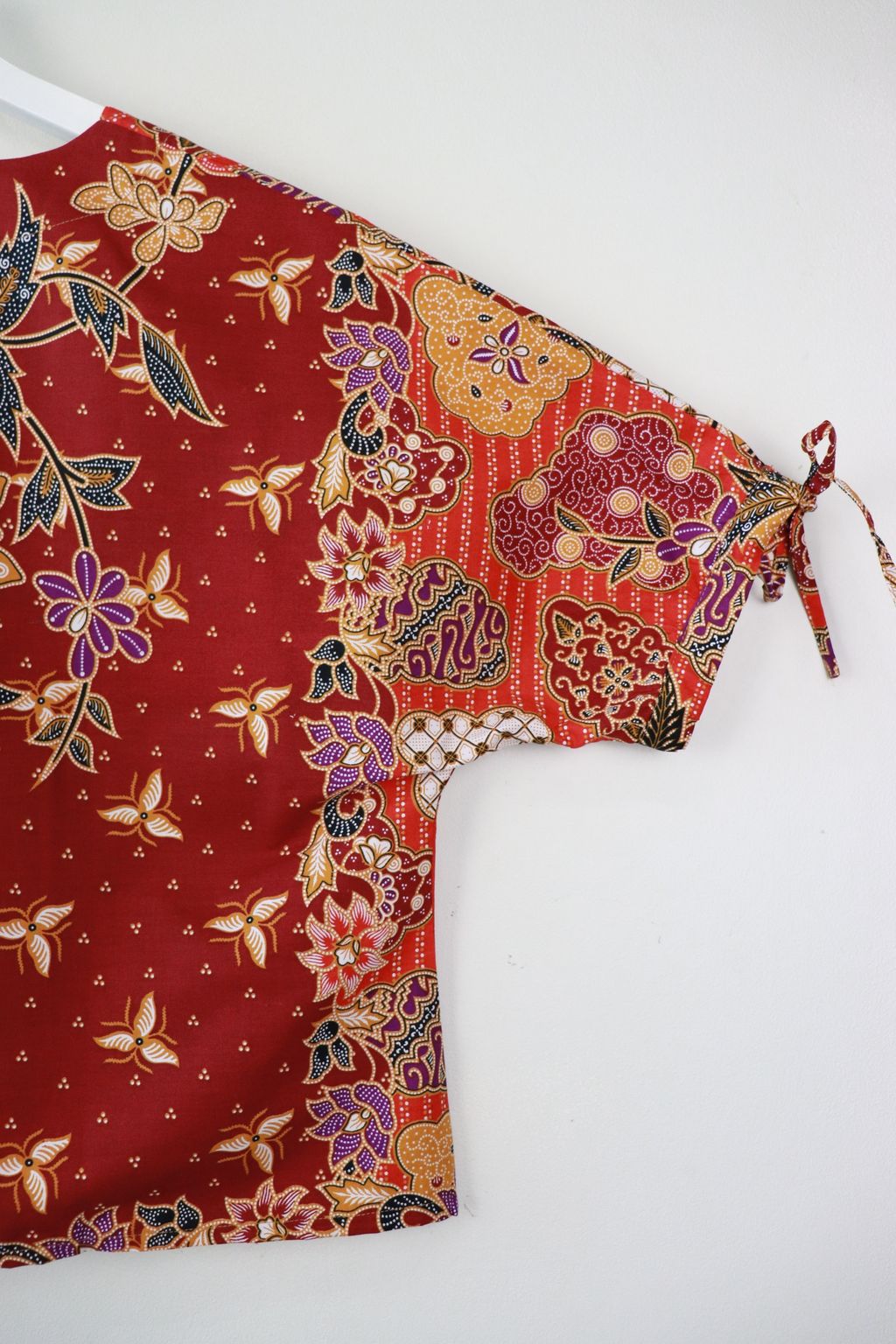 The simple V - neck batik top that suits most figures very well. With sleeves that fall on the shoulders. Wear this with a plain bottom. Both work and play friendly !