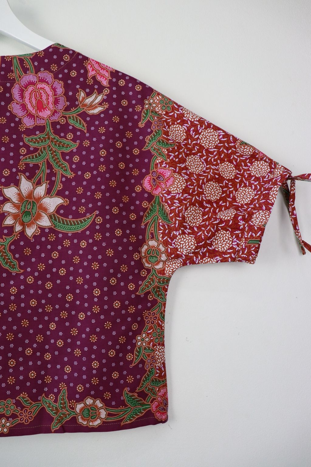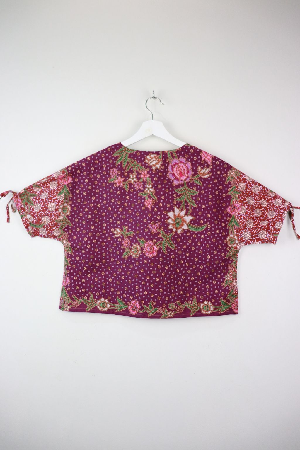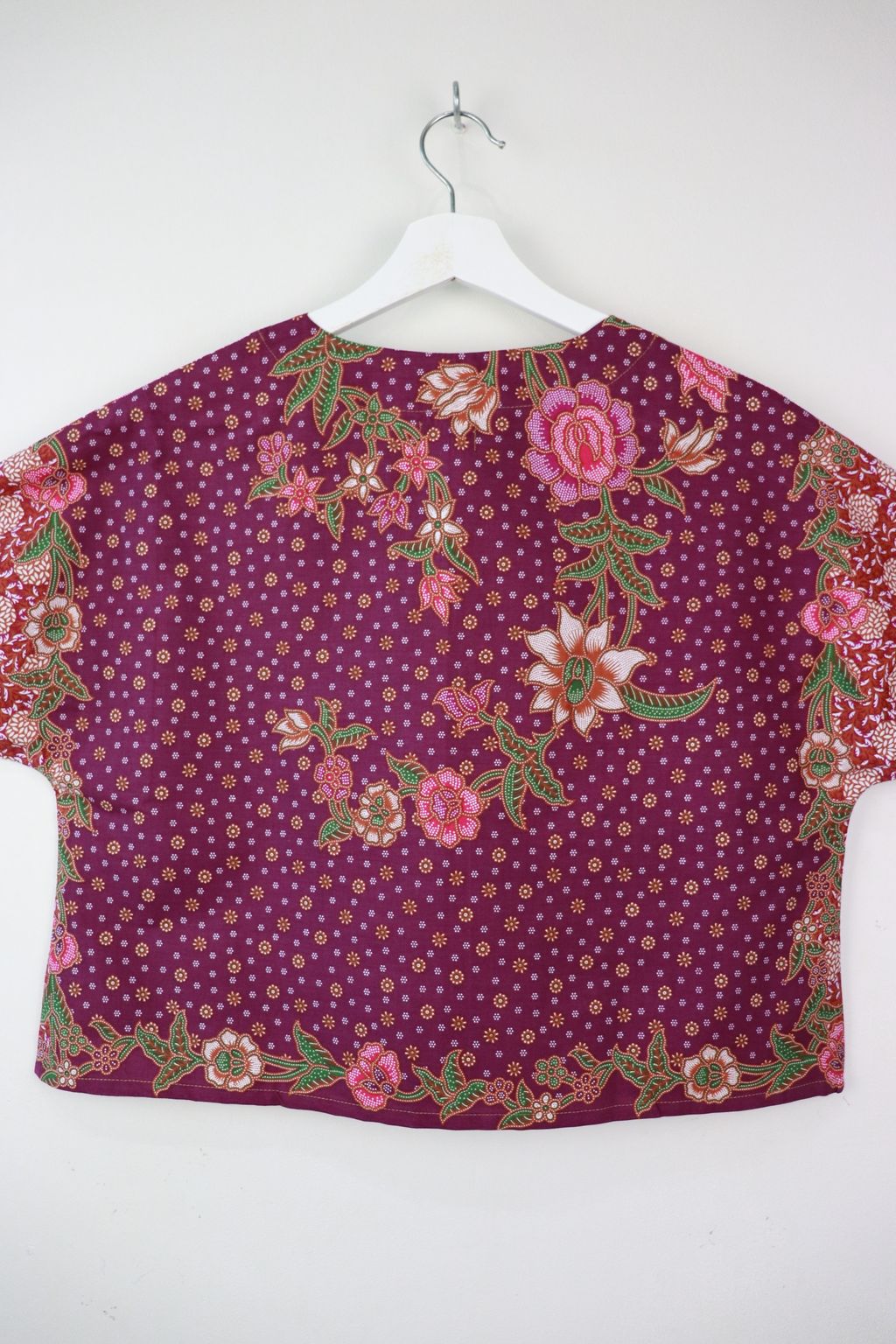 The simple V - neck batik top that suits most figures very well. With sleeves that fall on the shoulders. Wear this with a plain bottom. Both work and play friendly !