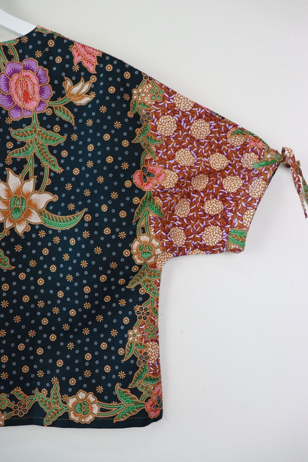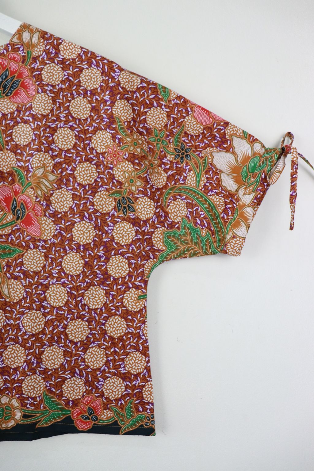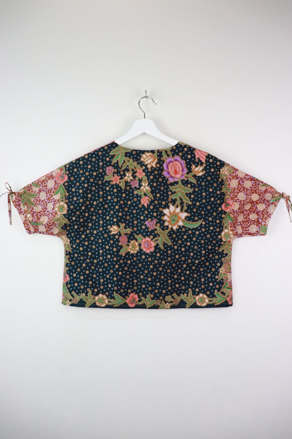 The simple V - neck batik top that suits most figures very well. With sleeves that fall on the shoulders. Wear this with a plain bottom. Both work and play friendly !
