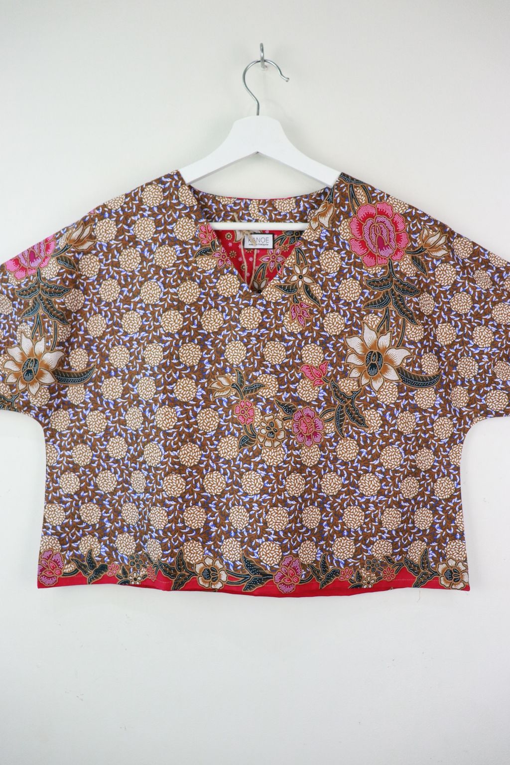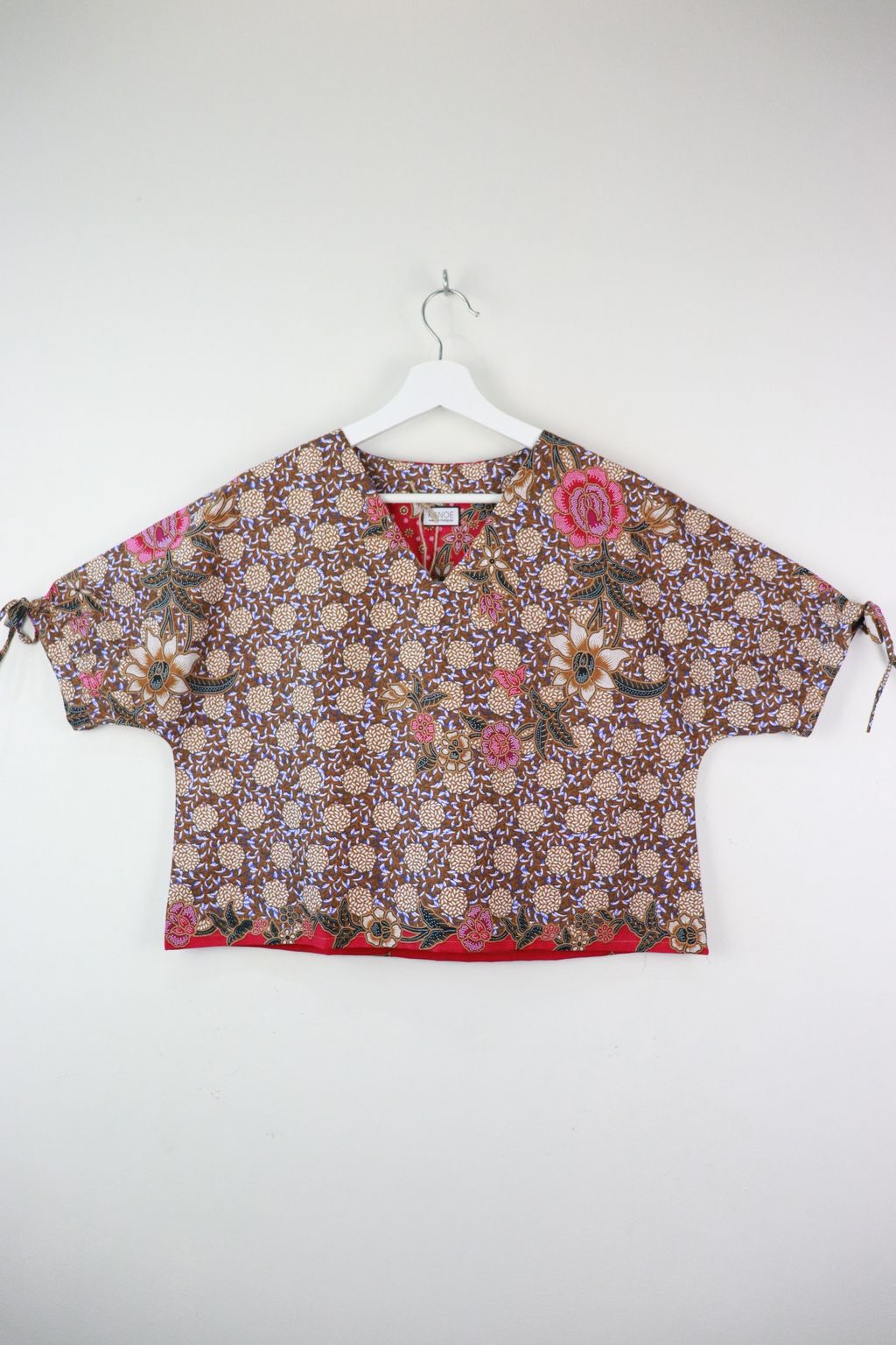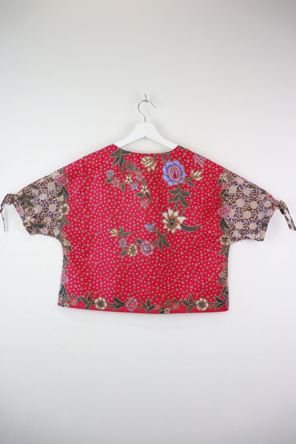 The simple V - neck batik top that suits most figures very well. With sleeves that fall on the shoulders. Wear this with a plain bottom. Both work and play friendly !