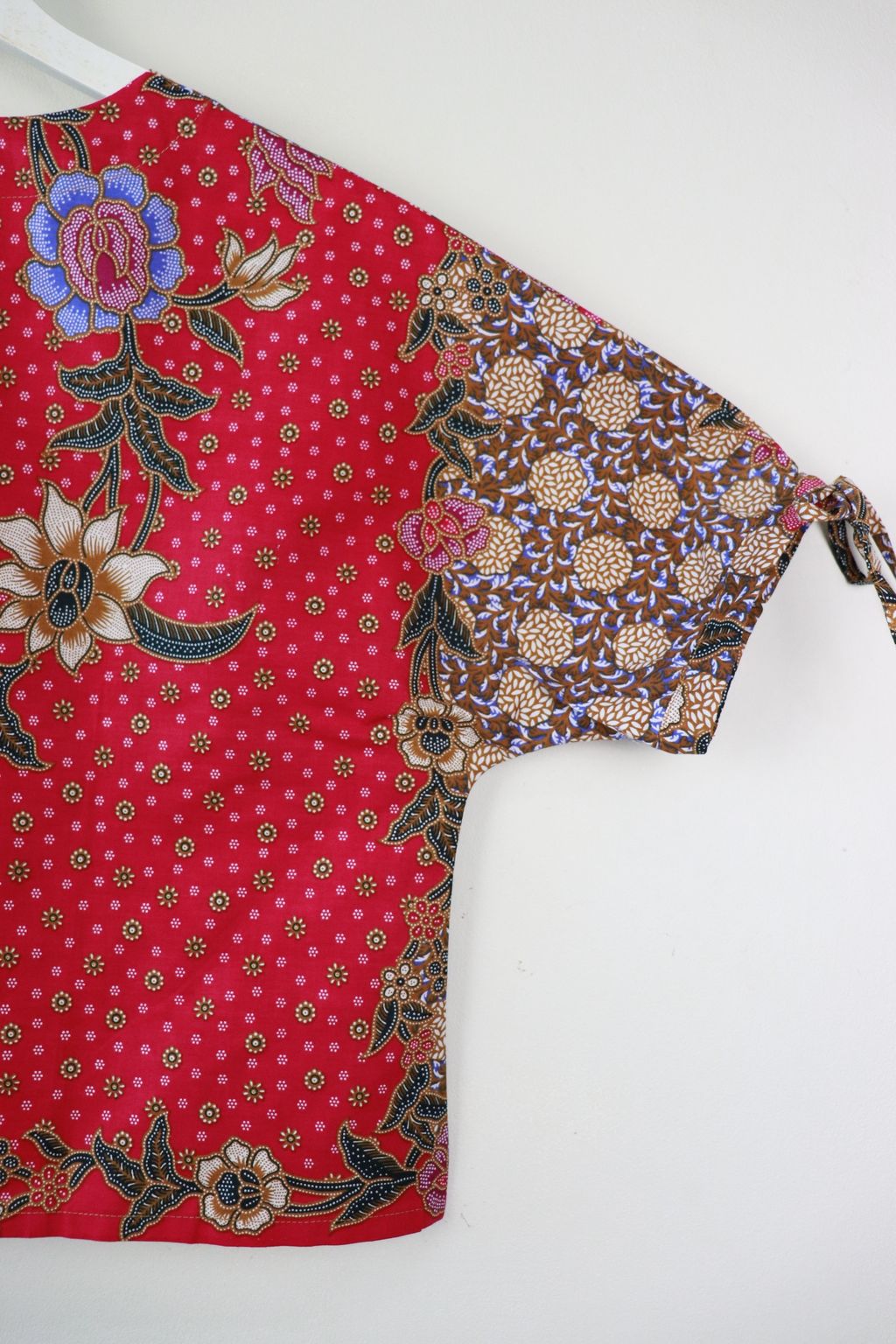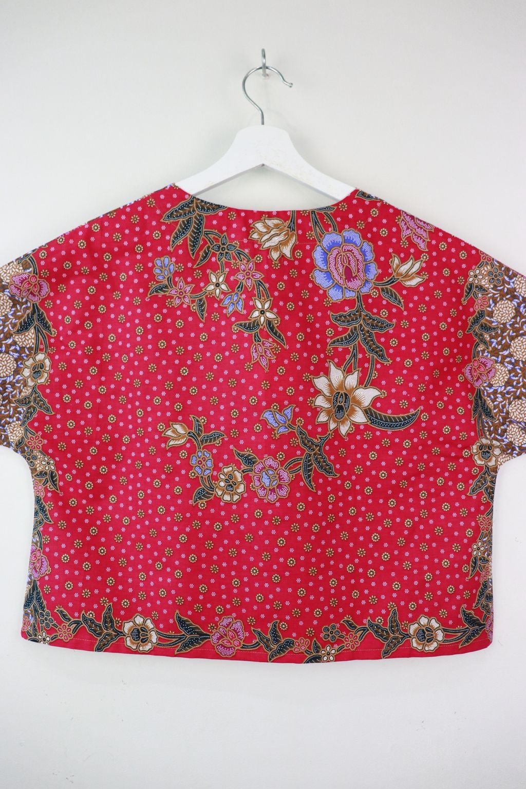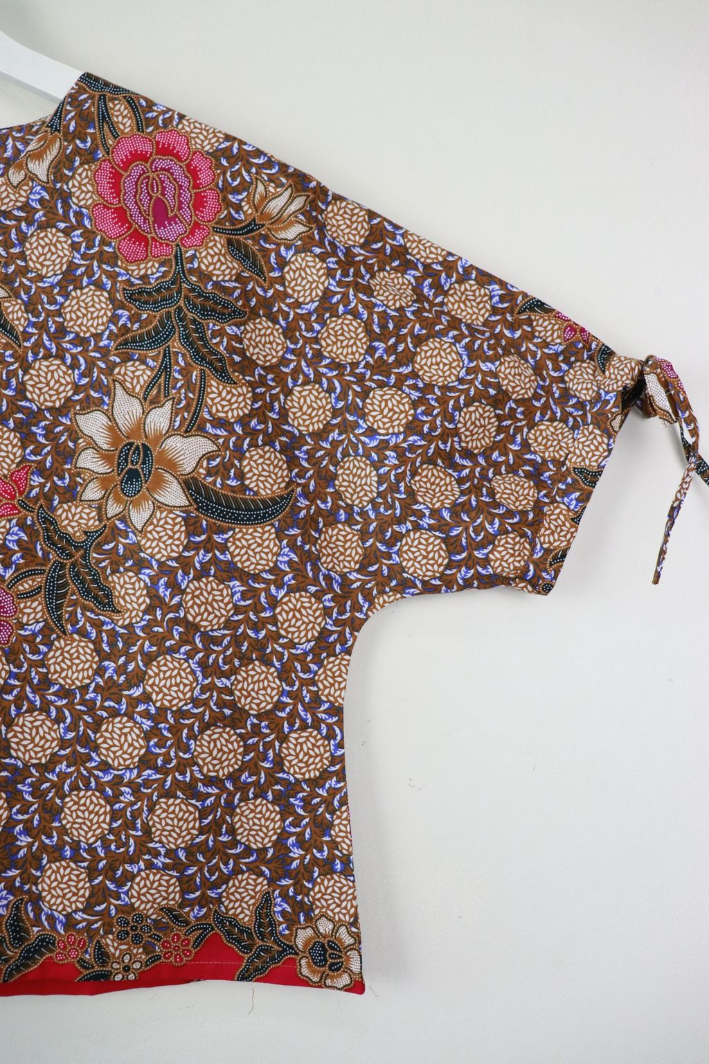 The simple V - neck batik top that suits most figures very well. With sleeves that fall on the shoulders. Wear this with a plain bottom. Both work and play friendly !