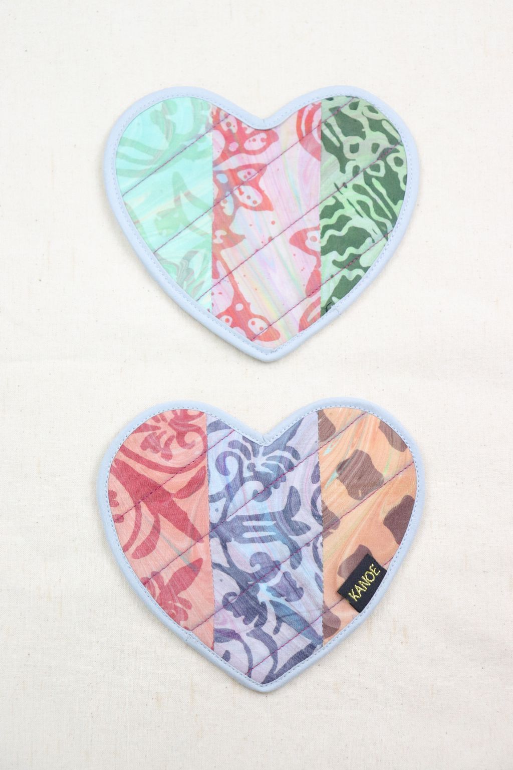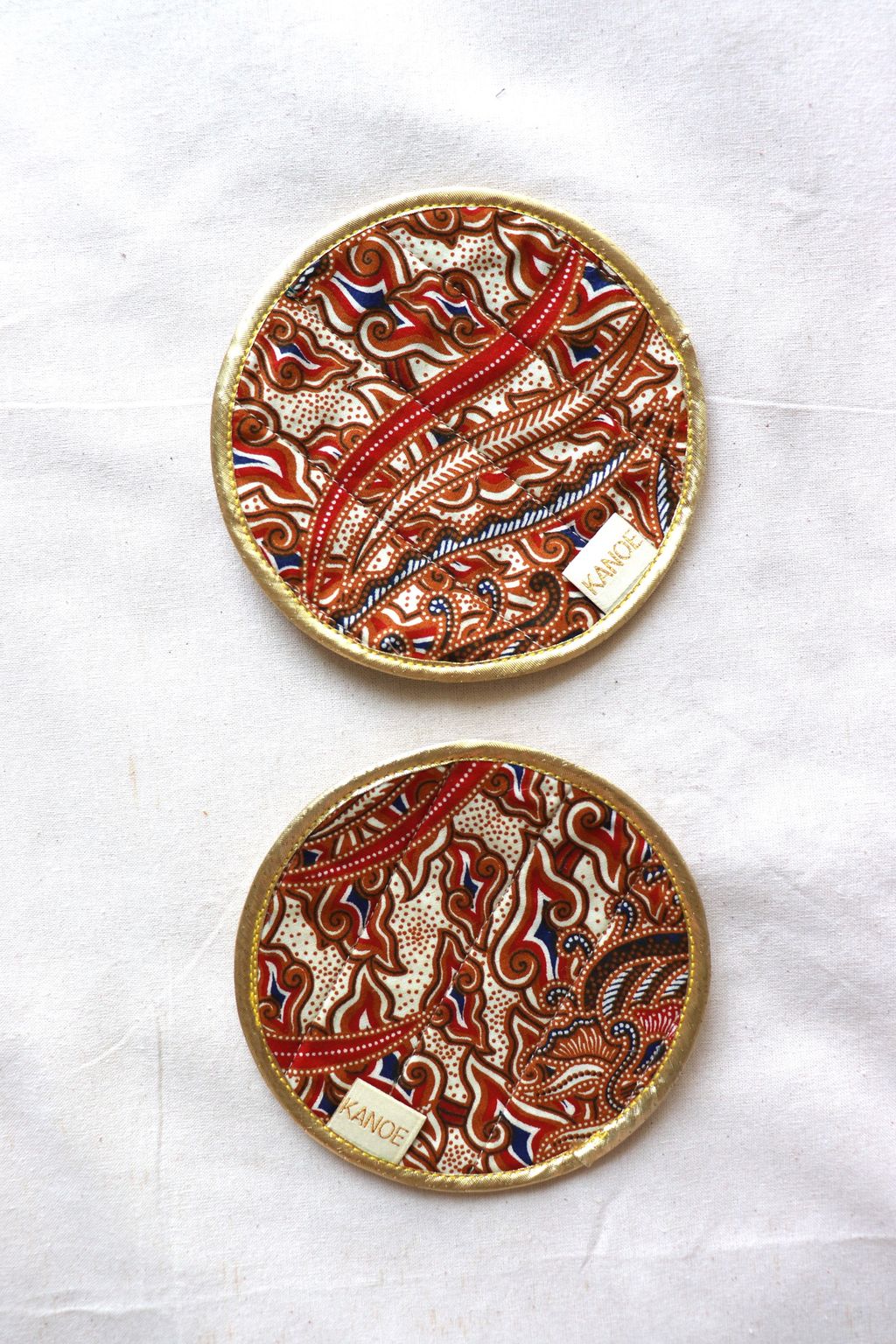 Our tailors had fun mixing and matching the batik prints of these reversible digital and handmade batik textile coasters.