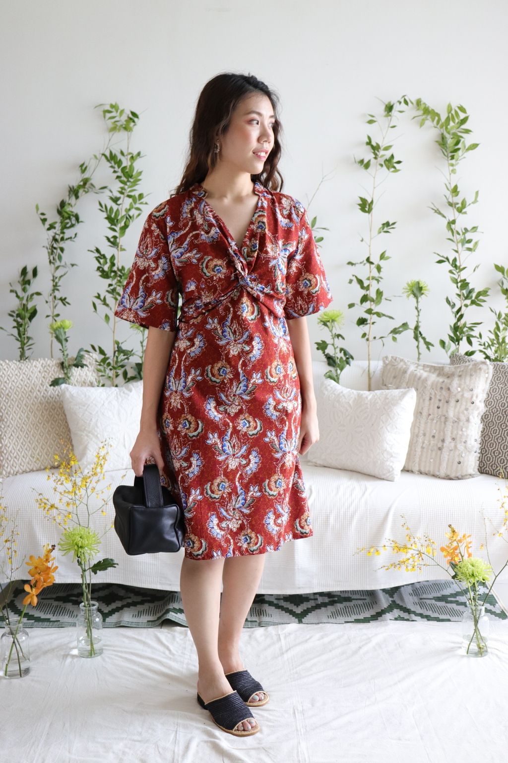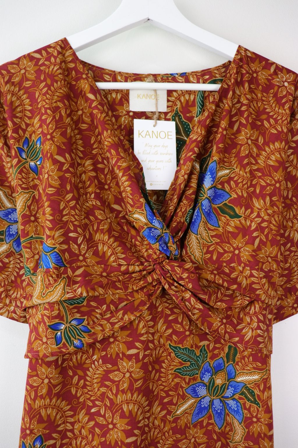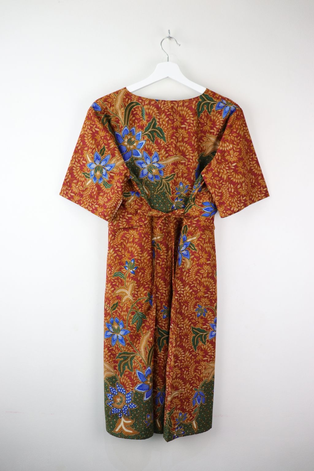 Has pockets at the sides and a tie to niche in at the waist accentuating the feminine shape.