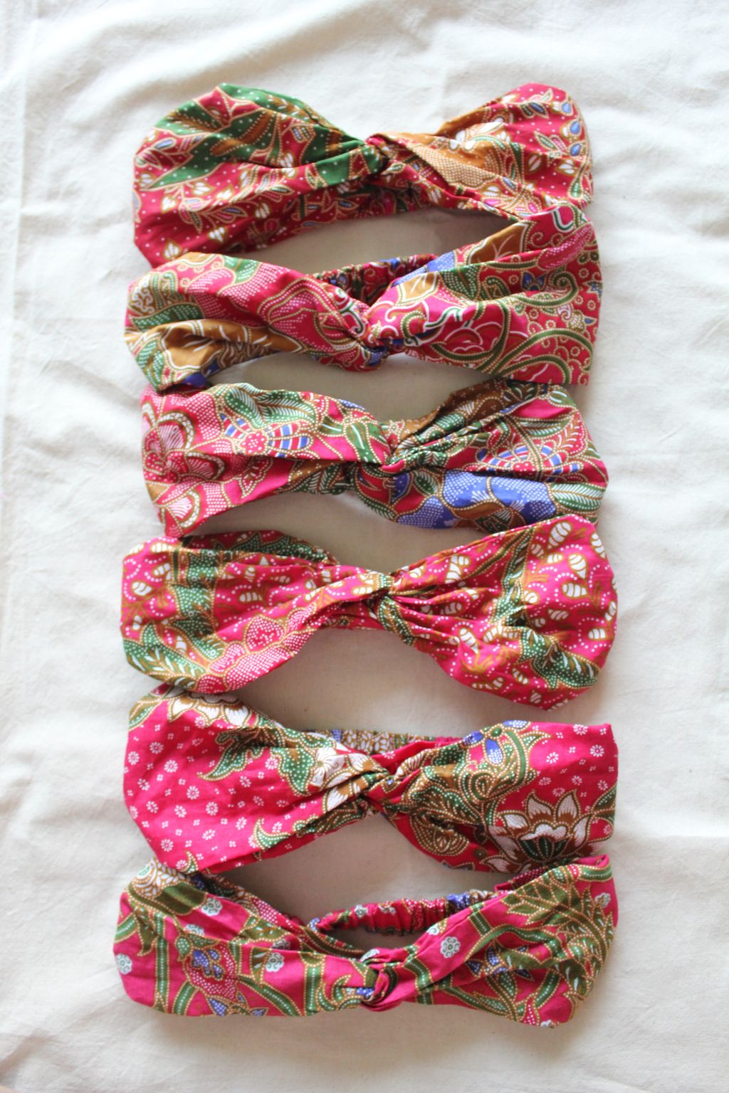 These are klassik twisted headbands adding a pop of batik to your everyday! They will fit a standard size head comfortably!
