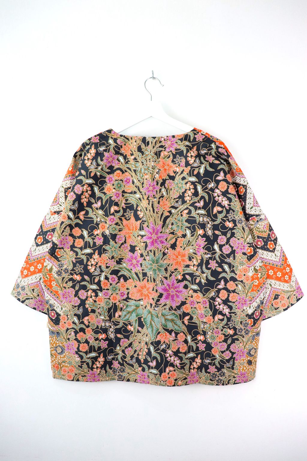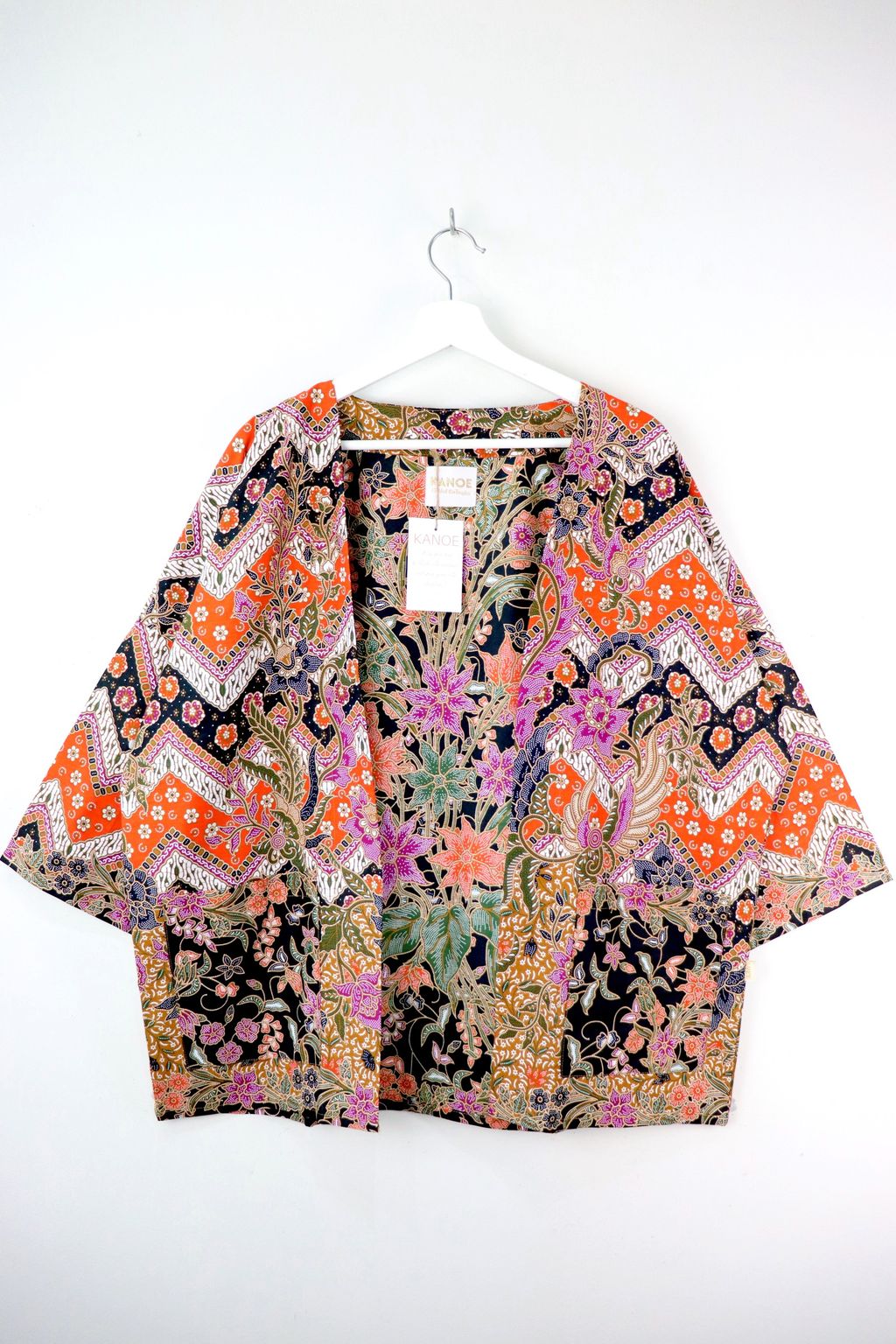 When we are stuck at home wearing a basic spaghetti strap top at home and the door bell rings, throw on this kimono before heading out to collect that parcel. Or if your boss calls you last minute for a zoom call. Throw on this batik kimono!