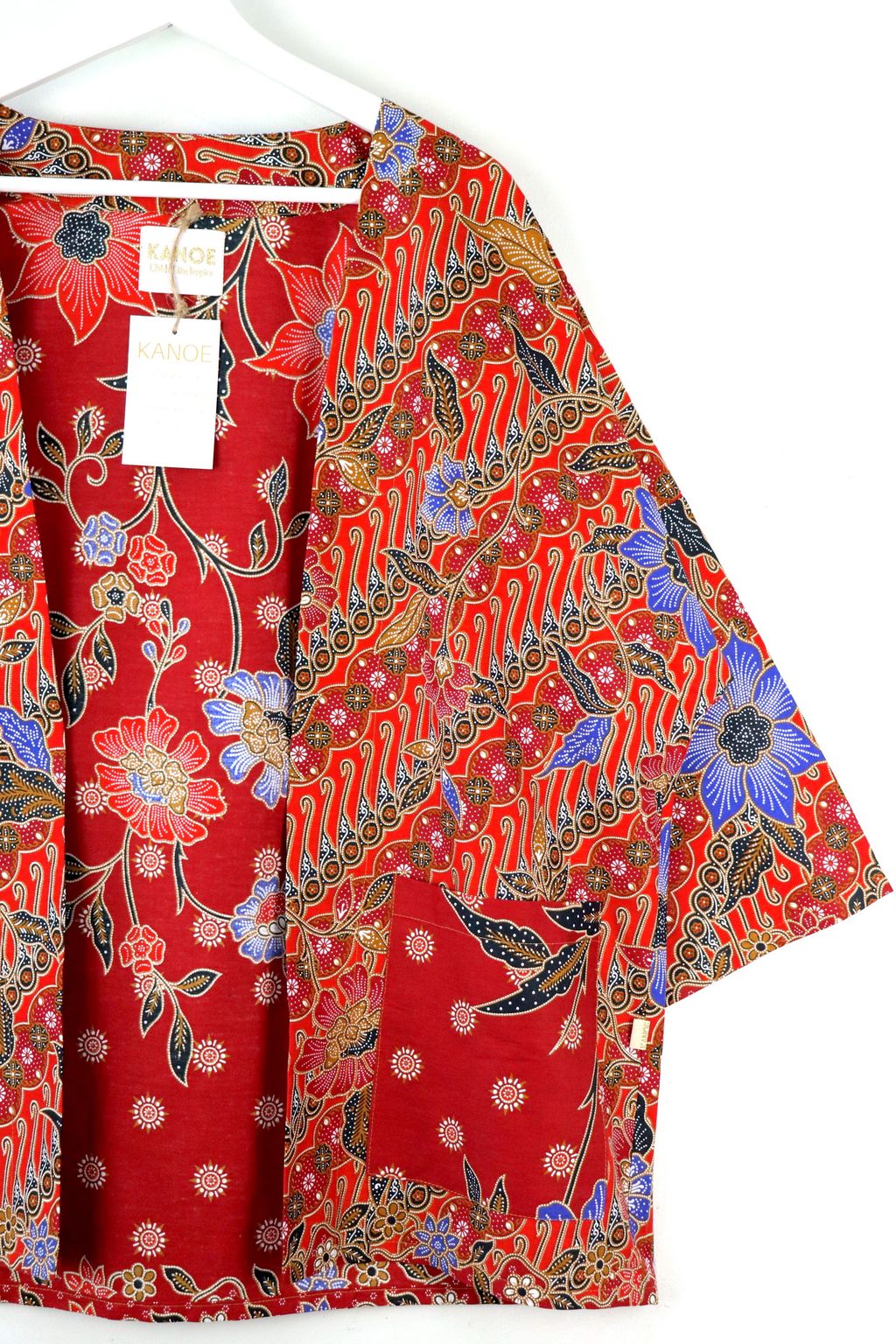 When we are stuck at home wearing a basic spaghetti strap top at home and the door bell rings, throw on this kimono before heading out to collect that parcel. Or if your boss calls you last minute for a zoom call. Throw on this batik kimono!