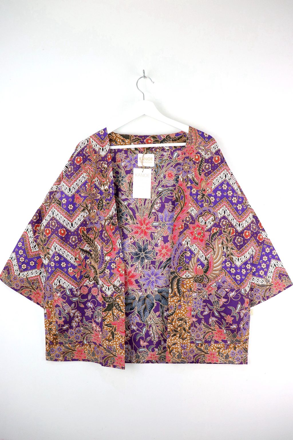 When we are stuck at home wearing a basic spaghetti strap top at home and the door bell rings, throw on this kimono before heading out to collect that parcel. Or if your boss calls you last minute for a zoom call. Throw on this batik kimono!