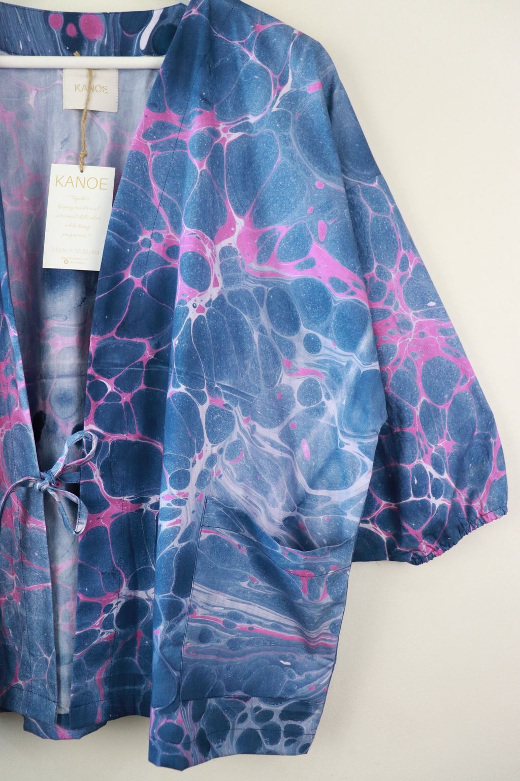 When we are stuck at home wearing a basic spaghetti strap top at home and the door bell rings, throw on this kimono before heading out to collect that parcel hehe. Or if your boss calls you last minute for a zoom call. Throw on this batik kimono :p