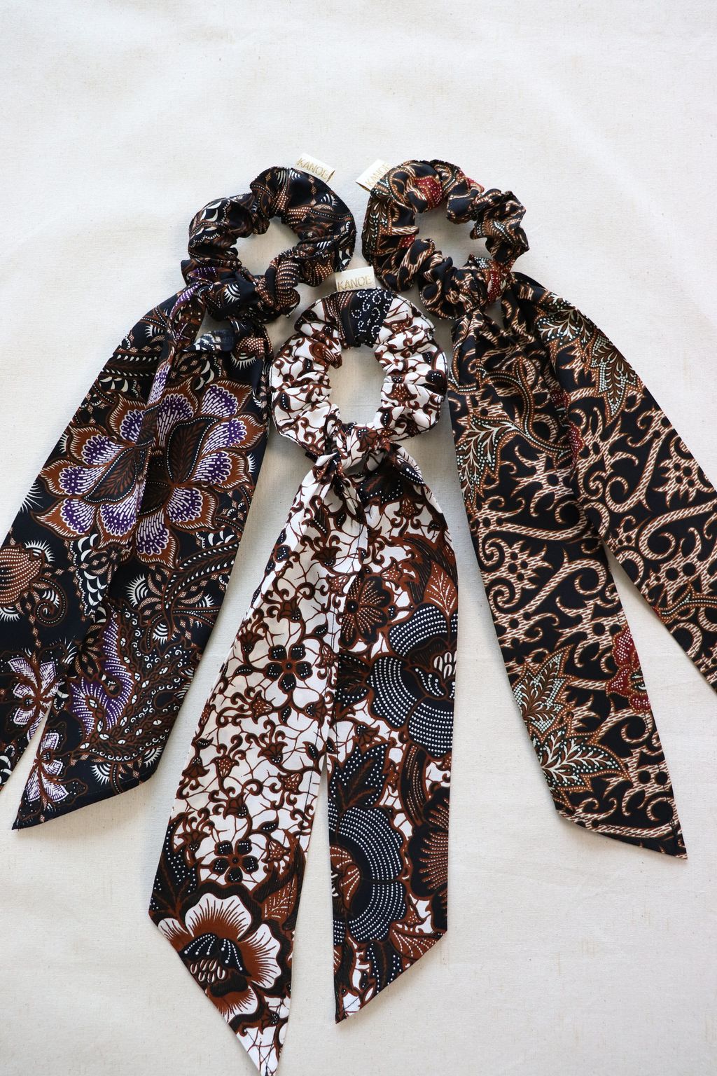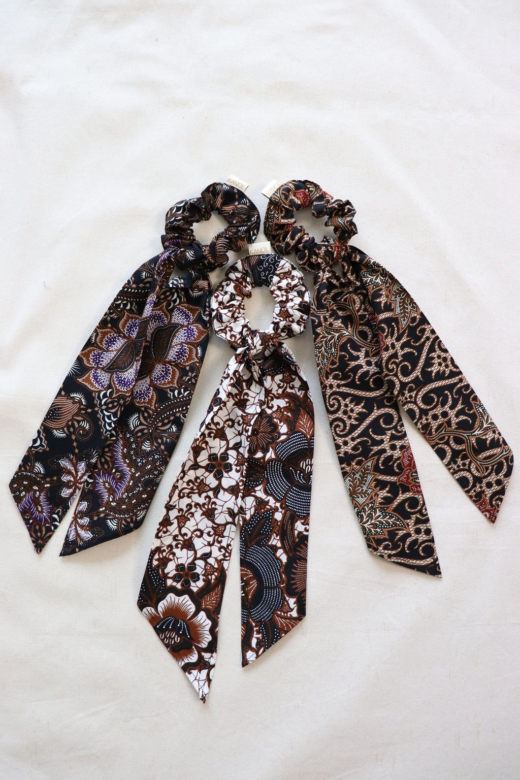 Batik Scrunchie w/ Ribbon [Set of 3] - Midnight Moon