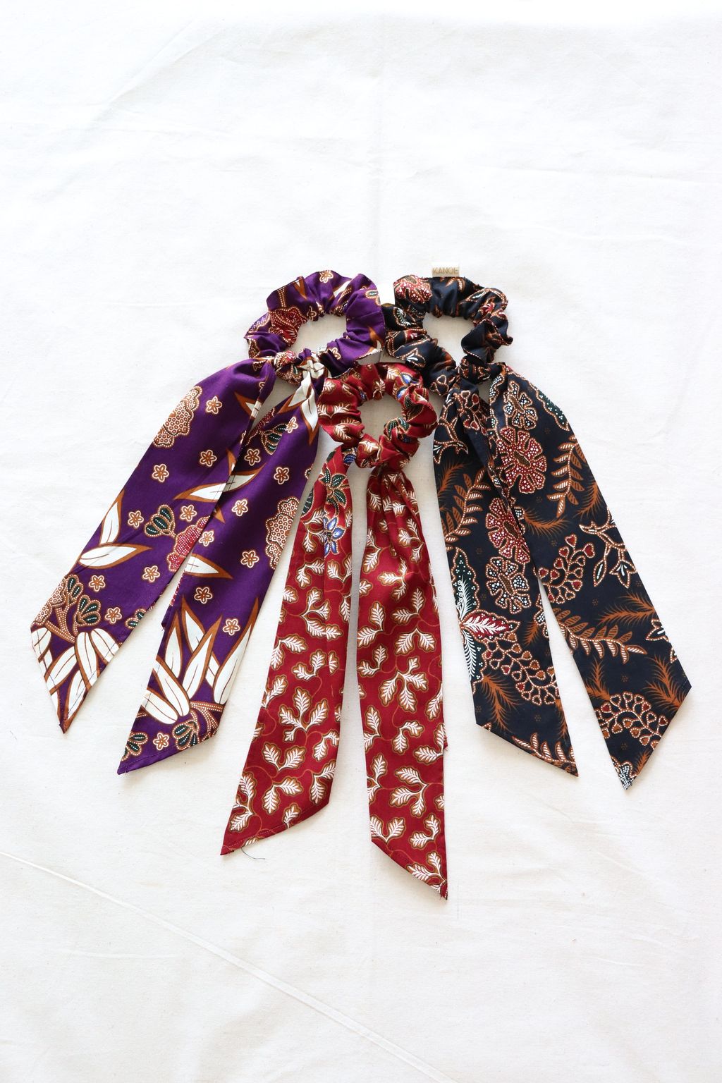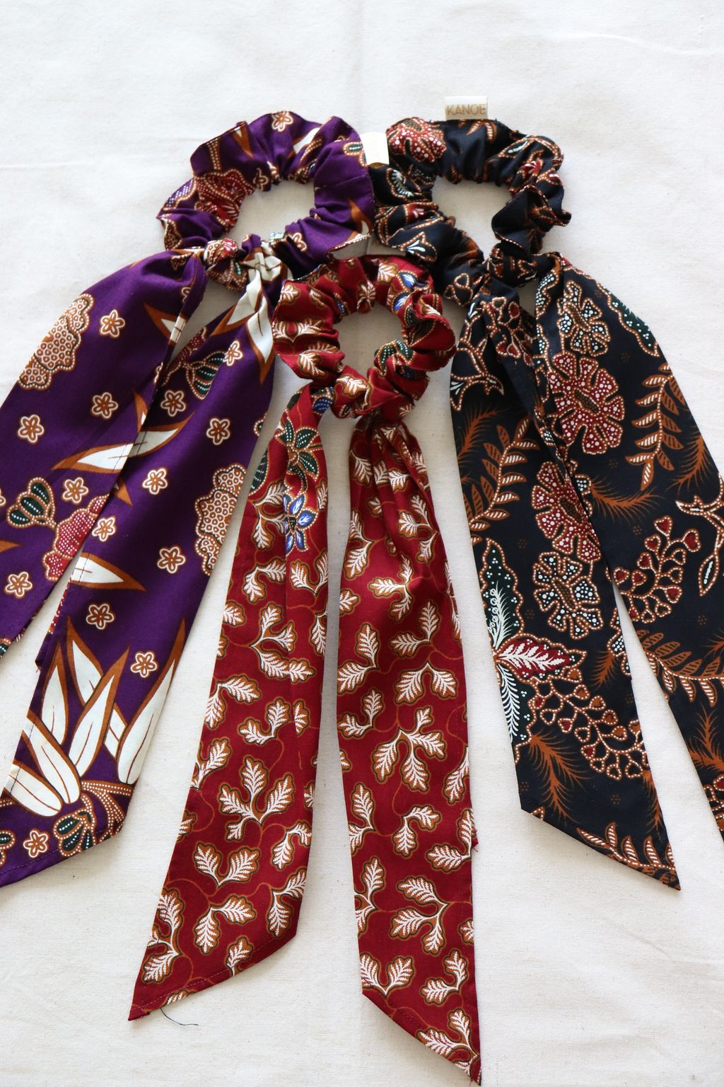 Batik Scrunchie w/ Ribbon [Set of 3] - Rasberry Jam