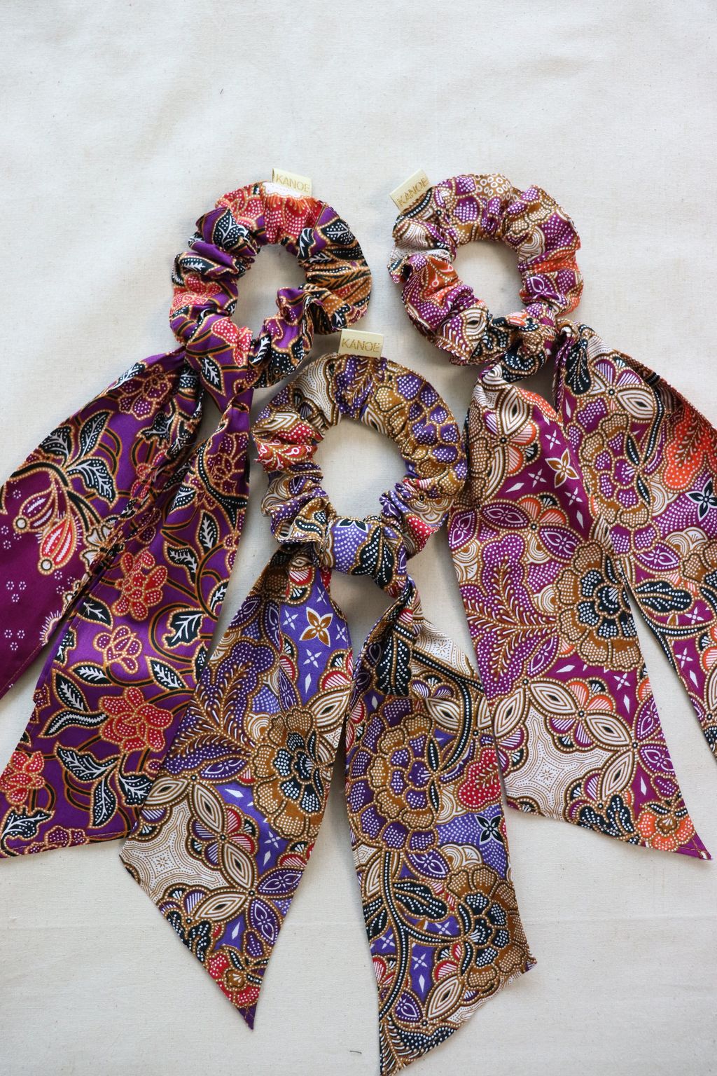 Batik Scrunchie w/ Ribbon [Set of 3] - Sweet Nightshade