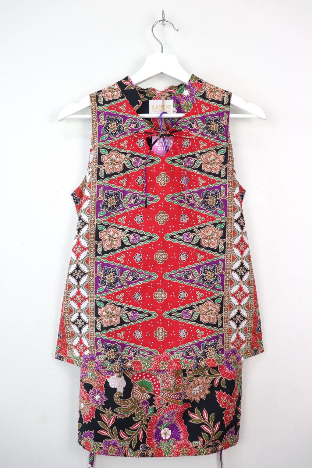 A lovely Matching Set of our special edition Heart Keyhole Qi Pao Sleeveless Batik Top and  matching skirt. These have that modern feel and can be worn separately or as a set. A versatile piece to wear througout the year for the variety of occasions in which you may want to bring this batik pieces out to play !