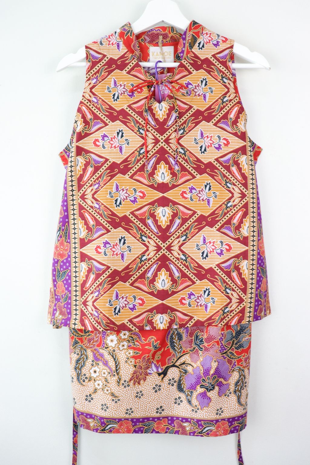 A lovely Matching Set of our special edition Heart Keyhole Qi Pao Sleeveless Batik Top and matching skirt. These have that modern feel and can be worn separately or as a set. A versatile piece to wear througout the year for the variety of occasions in which you may want to bring this batik pieces out to play !