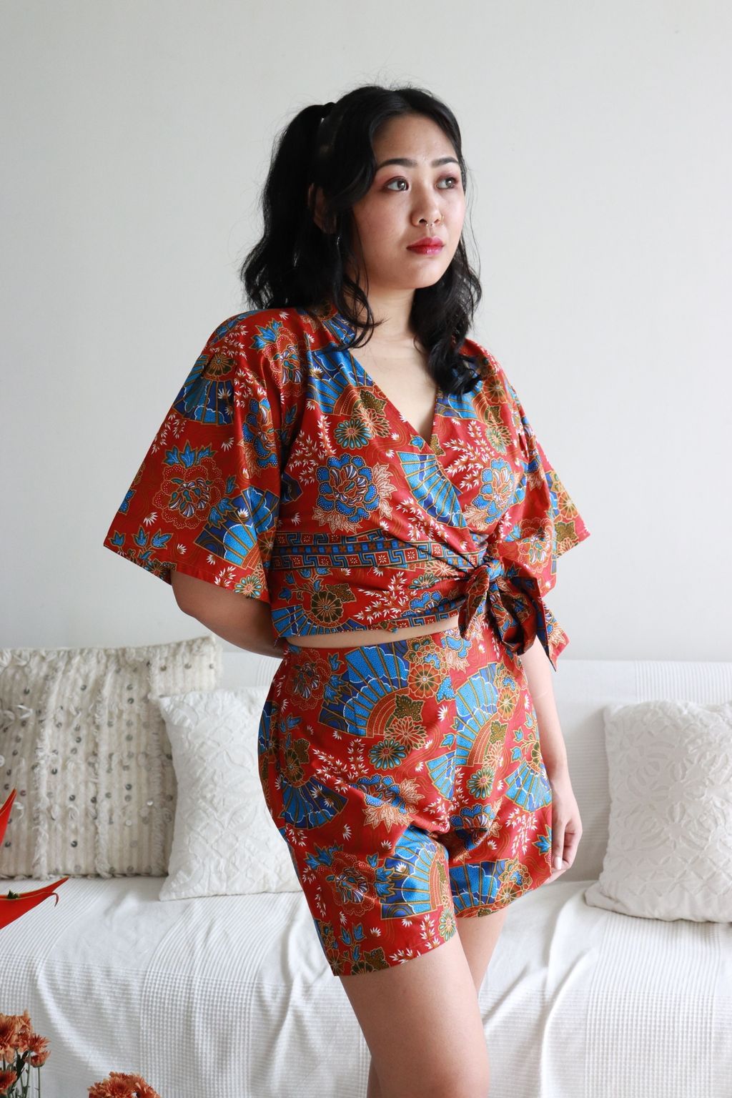 We decided to bring in a new rendition of our infamous Kimono Wrap Matching set that was a hit in our previous CNY Collection! This time we bring it back with bigger butterfly sleeves and comfy fitted shorts. Yay !!