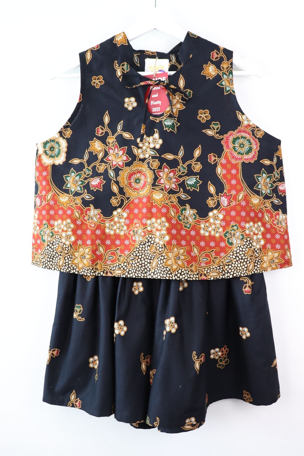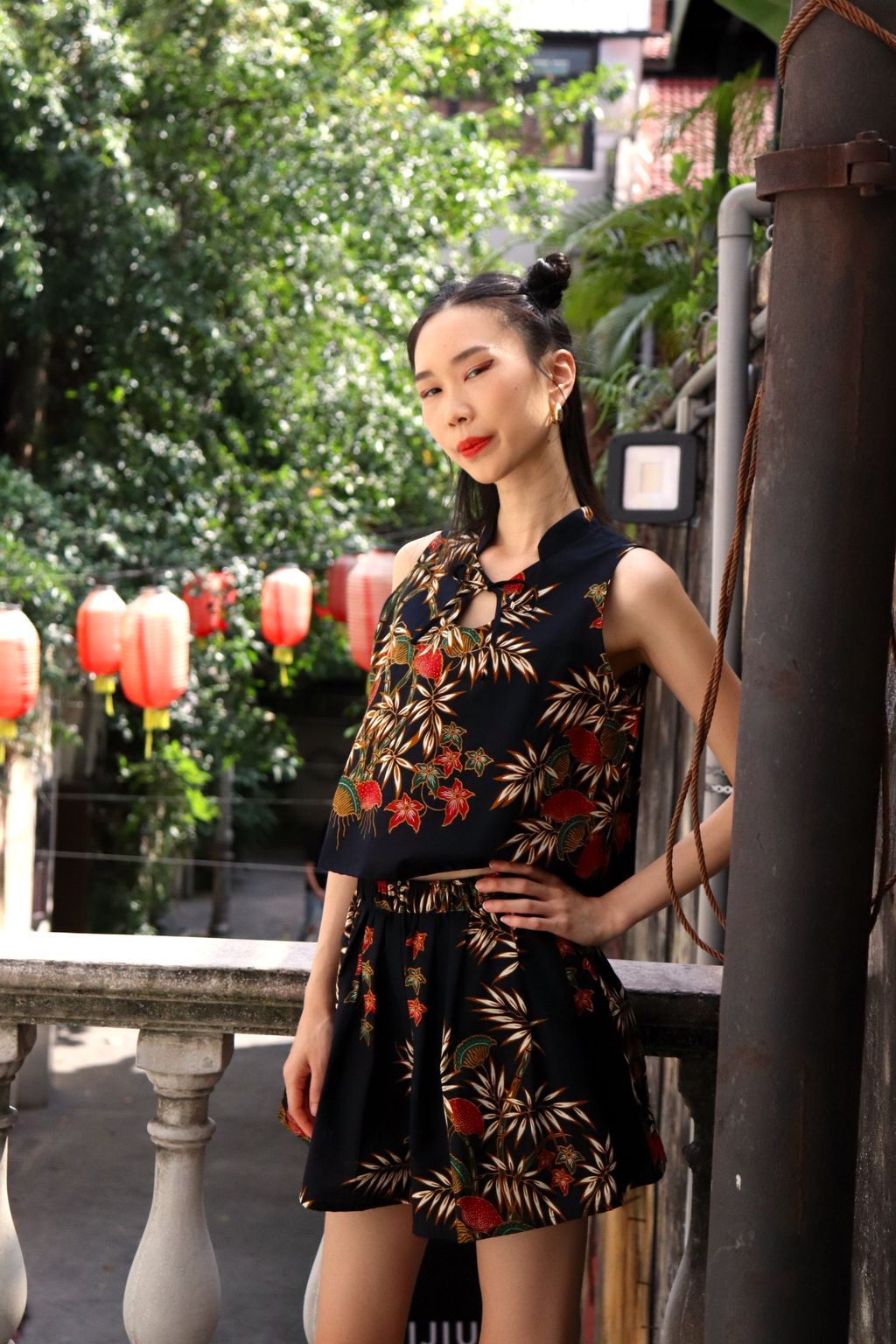 A sleeveless top with a fortune circle ribbon tie front + a matching shorts with pockets!