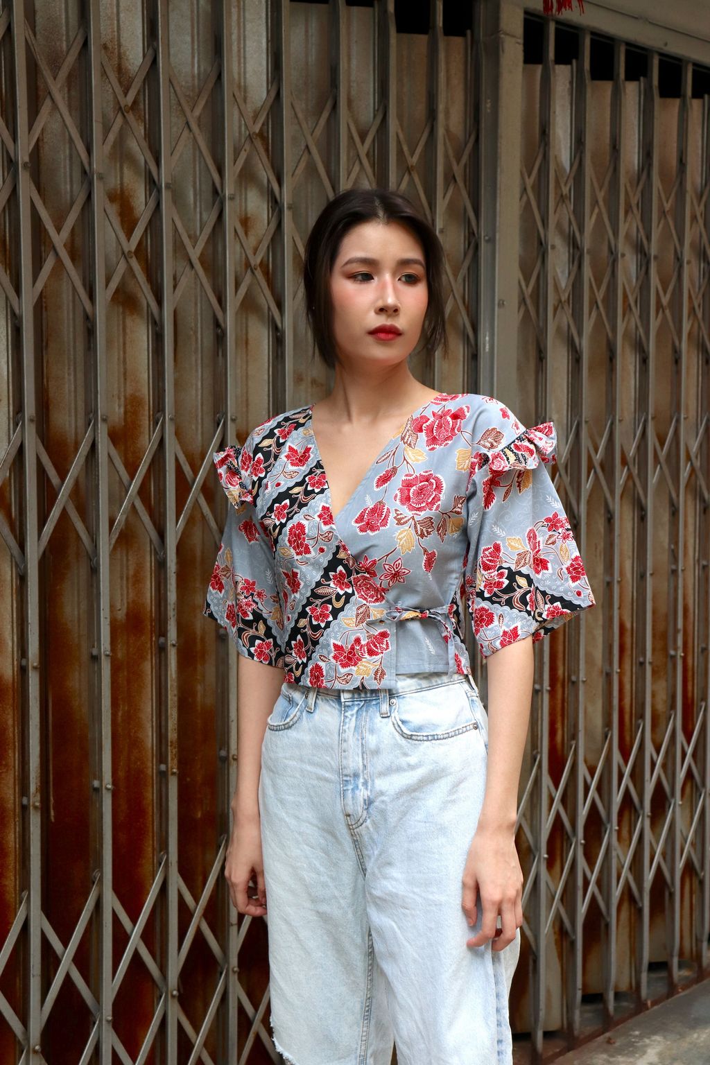 Frill Wrap Batik Top - Flora's Cottage