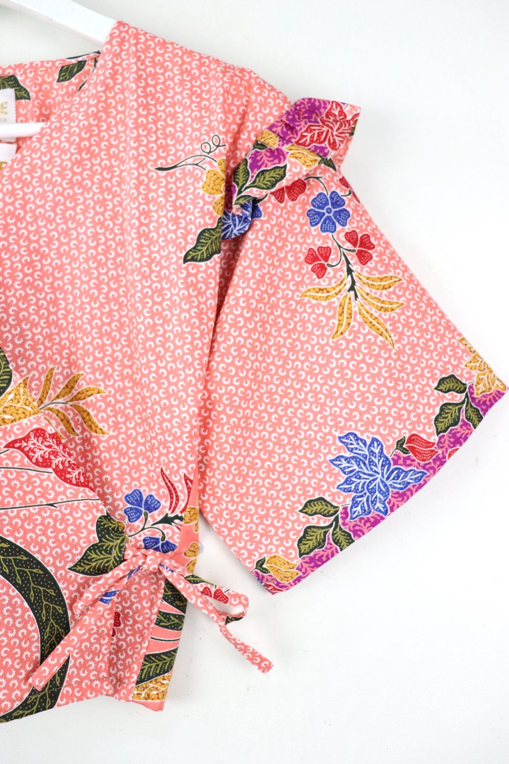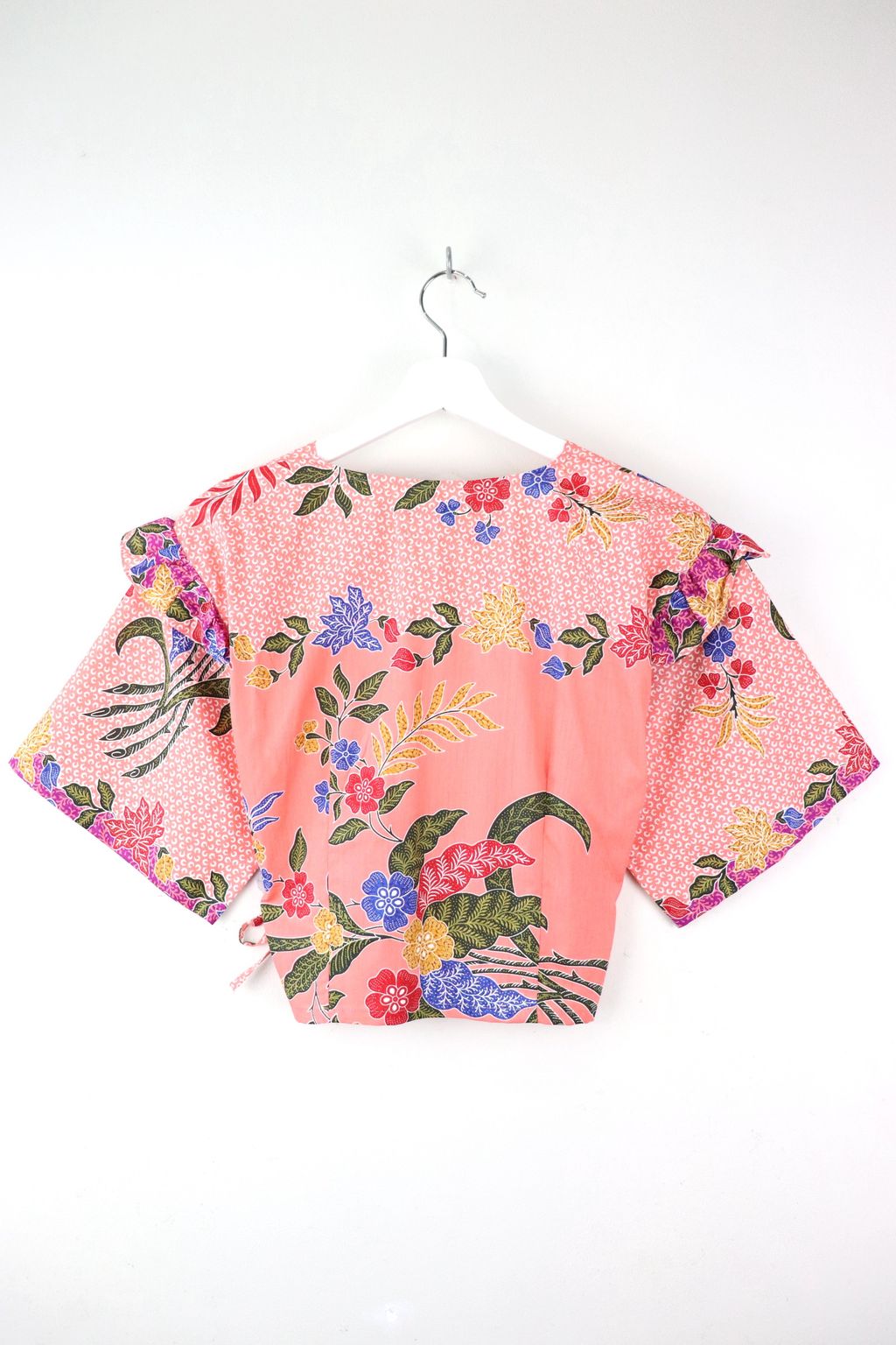 Frill Wrap Batik Top - Peony Petals