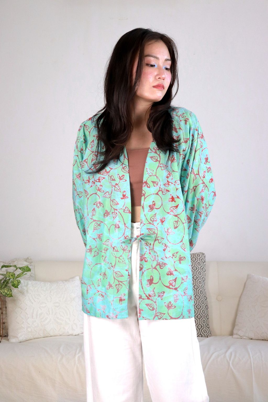 Our batik kimono worn over your basics will add that beautiful Indo-Malayan cultural touch that reminds you of your heritage or just to appreciate the art of our region. Keeps you feeling comfortable while indoors and great for those chilly rainy days. Definitely a piece for you to wear throughout the seasons. Made of 100% cotton, they are breathable and cooling, yet keeping you warm enough for comfort while indoors in the air conditioning.