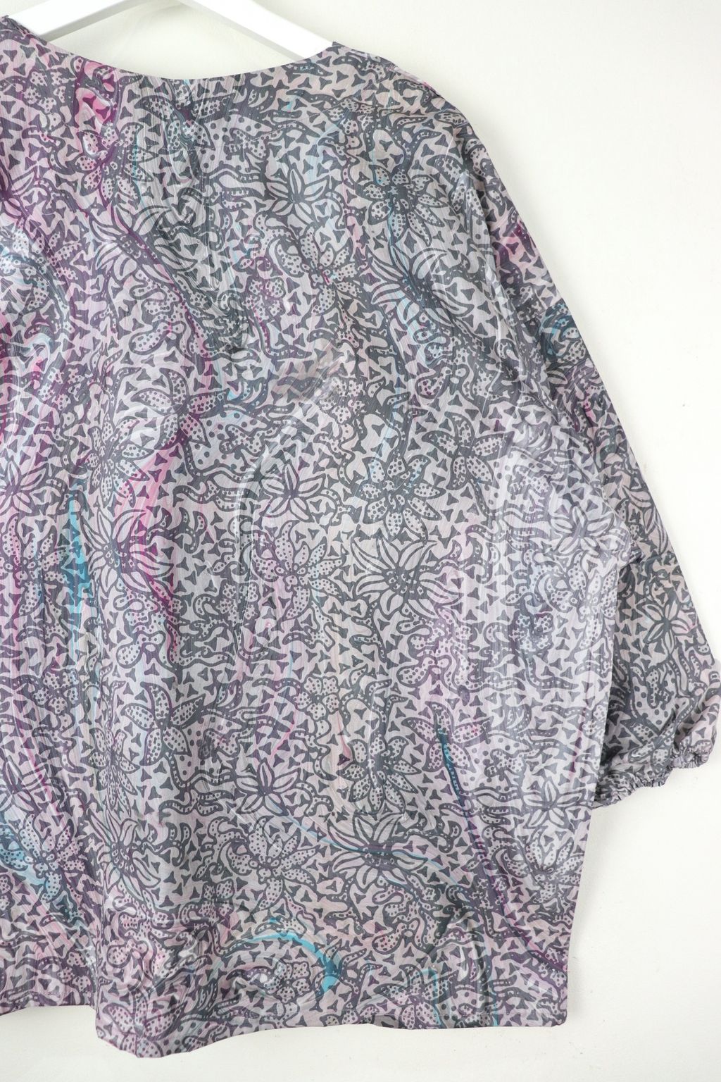 They have pockets in the front, as well a curved sleeve with elastic at the end of the sleeve which gives from for comfort of ease of movement as well a handy place for you to keep items when your hands are full! These pieces are also made with handstamped batik done locally by Malaysian Artisans!