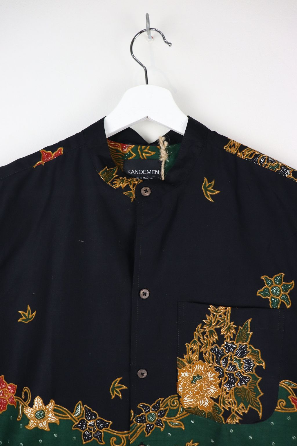 KANOEMEN Stand Collar Batik Shirt - Midnight