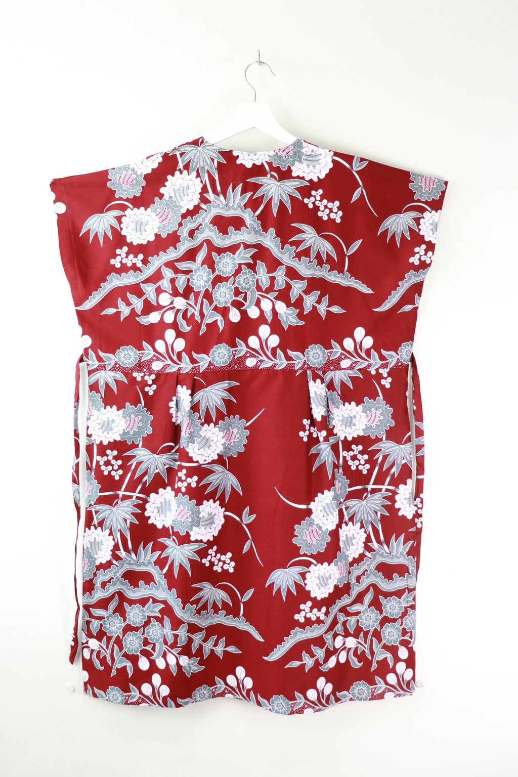 One size fits all with a waist tie that allows you to draw the dress in to fit you exactly the way you want.