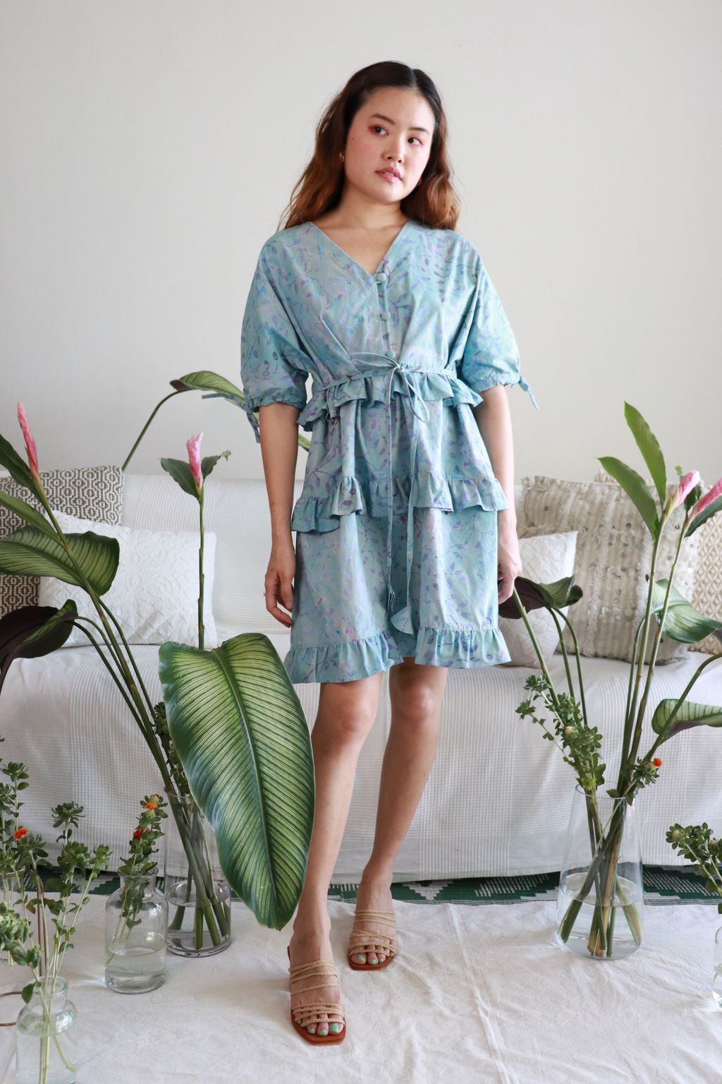 Handmade Batik Frill Dress - Peonies