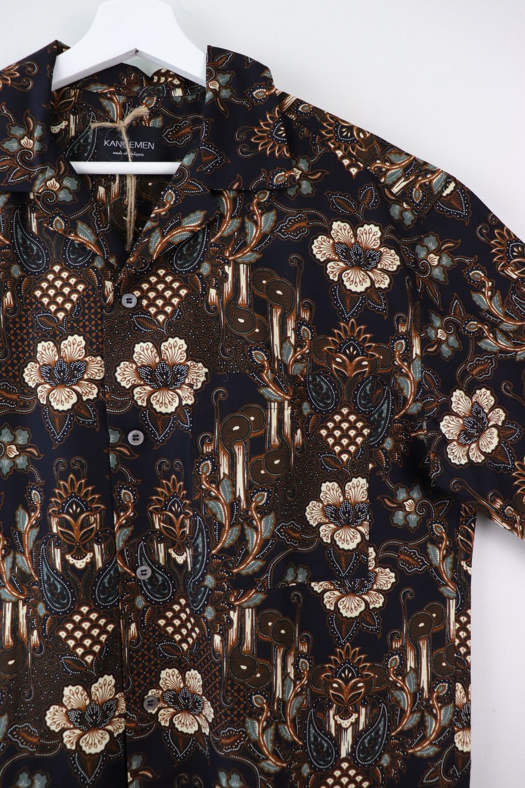 Keith is wearing the black shirt in size S, the grey shirt in size M and the blue shirt in size L standing at 173cm.
