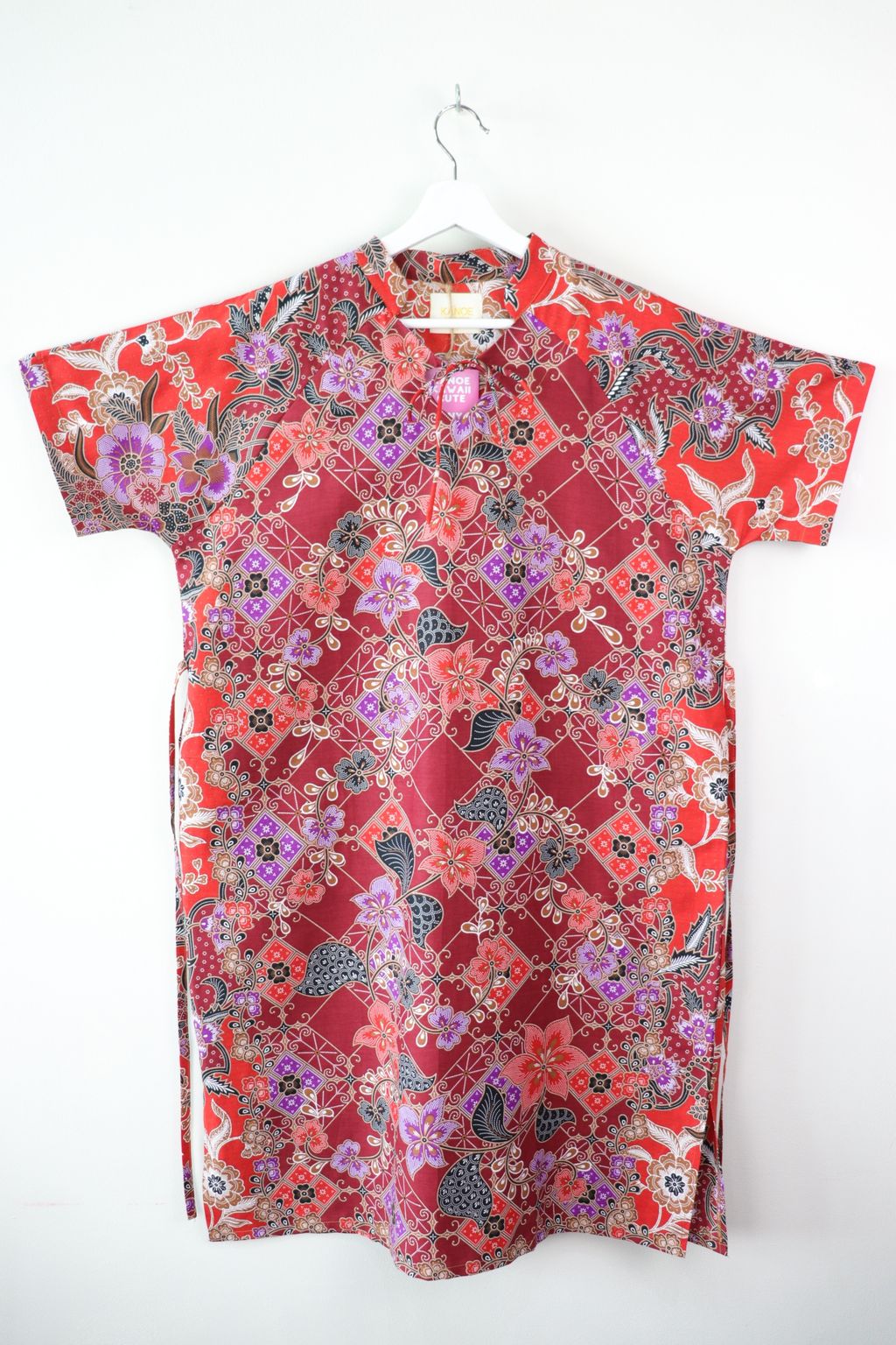 Care: Especially for the Festives whereby we want the batik to be at their brightest, we recommend bringing it to the dry cleaners for professional cleaning or wearing it prior to handwashing it. Color may bleed so please soak for a few hours in cold water and 3 tbps of salt and mild detergent, rinse until water is clear and do not dry under direct sunlight, iron may be hot.