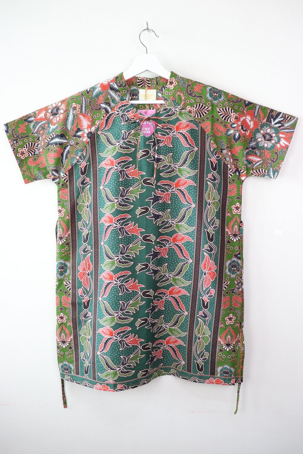 Care: Especially for the Festives whereby we want the batik to be at their brightest, we recommend bringing it to the dry cleaners for professional cleaning or wearing it prior to handwashing it. Color may bleed so please soak for a few hours in cold water and 3 tbps of salt and mild detergent, rinse until water is clear and do not dry under direct sunlight, iron may be hot.
