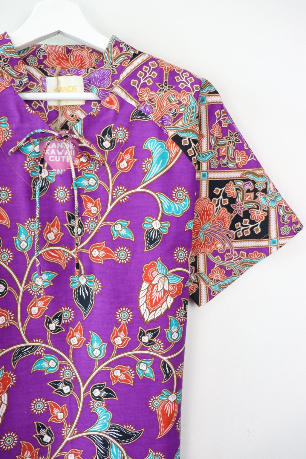 Care: Especially for the Festives whereby we want the batik to be at their brightest, we recommend bringing it to the dry cleaners for professional cleaning or wearing it prior to handwashing it. Color may bleed so please soak for a few hours in cold water and 3 tbps of salt and mild detergent, rinse until water is clear and do not dry under direct sunlight, iron may be hot.