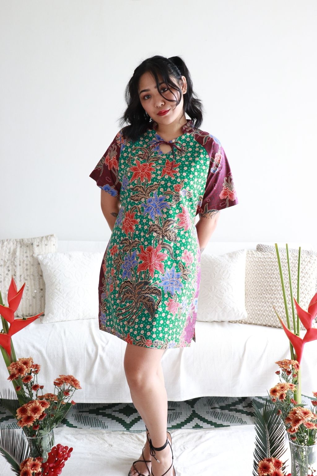 Care: Especially for the Festives whereby we want the batik to be at their brightest, we recommend bringing it to the dry cleaners for professional cleaning or wearing it prior to handwashing it. Color may bleed so please soak for a few hours in cold water and 3 tbps of salt and mild detergent, rinse until water is clear and do not dry under direct sunlight, iron may be hot.