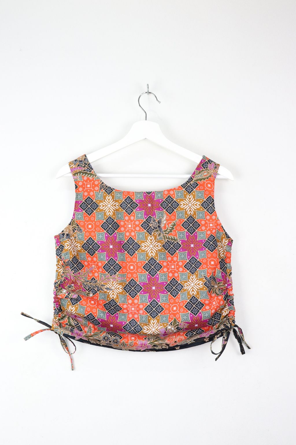 Side Ruched Drawstring Batik Top - Beach Bonfire ( S - M )