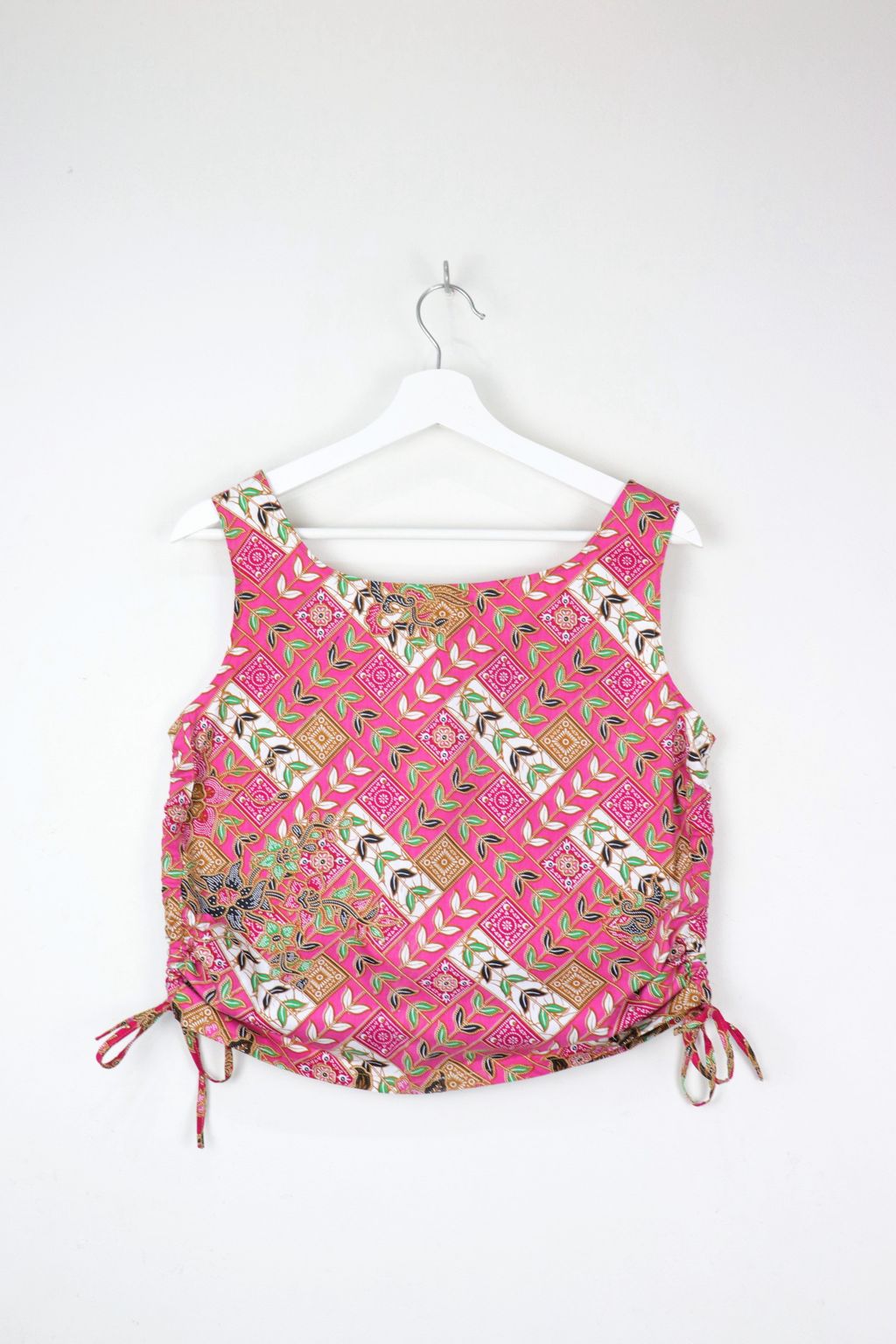 Side Ruched Drawstring Batik Top - Flamingo Floatie ( S - M )