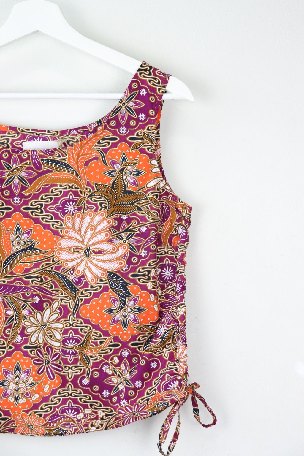 Side Ruched Drawstring Batik Top - Orchid Brunch ( S - M )