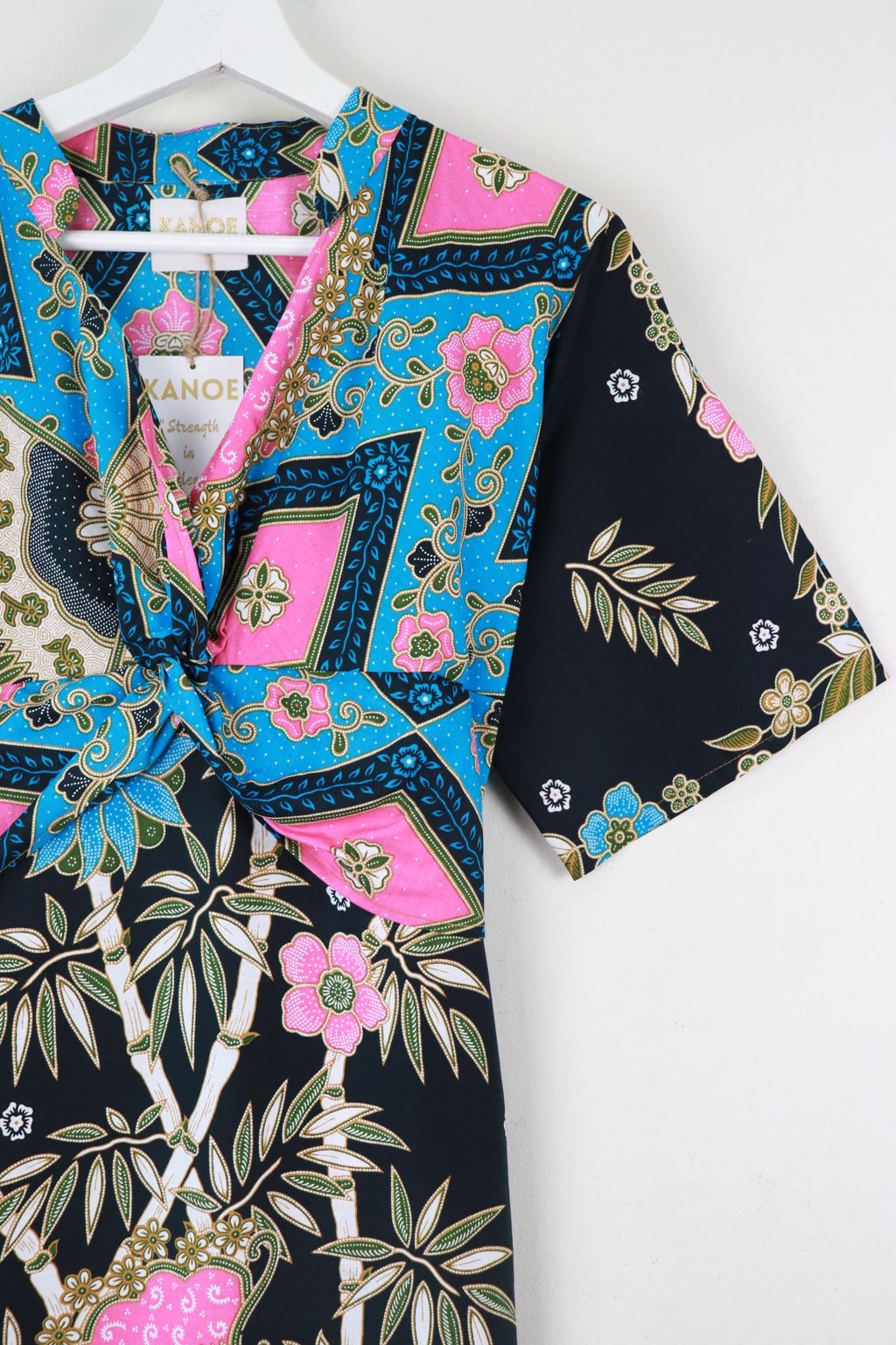 Twisted Front Dress w/ Mandarin Collar - Cyan Nights