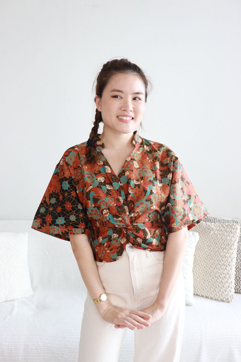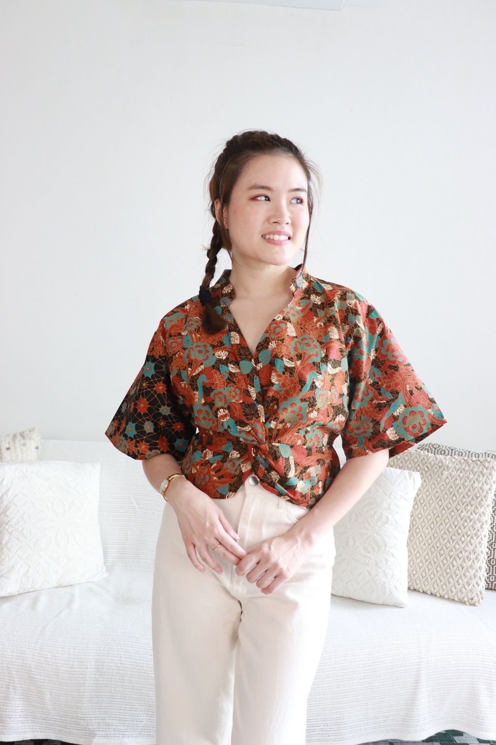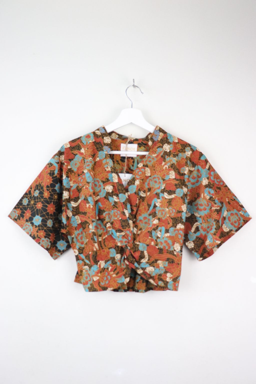 Featuring a mandarin collar and a twisted front, perfectly versatile.