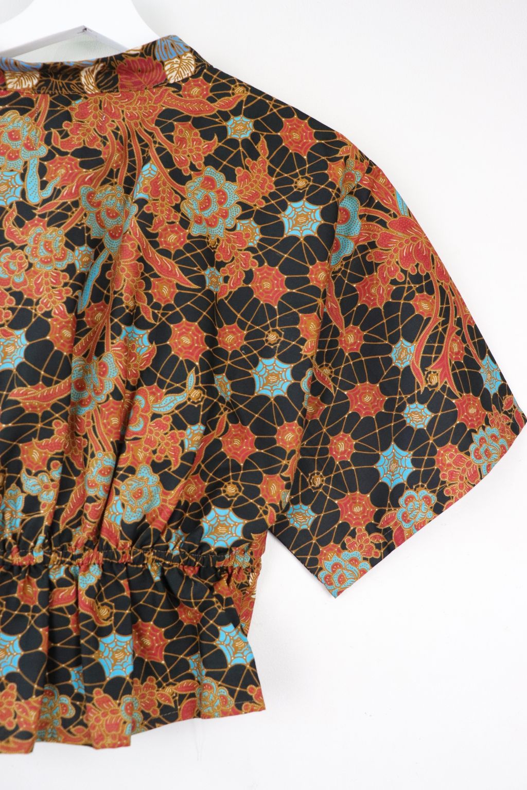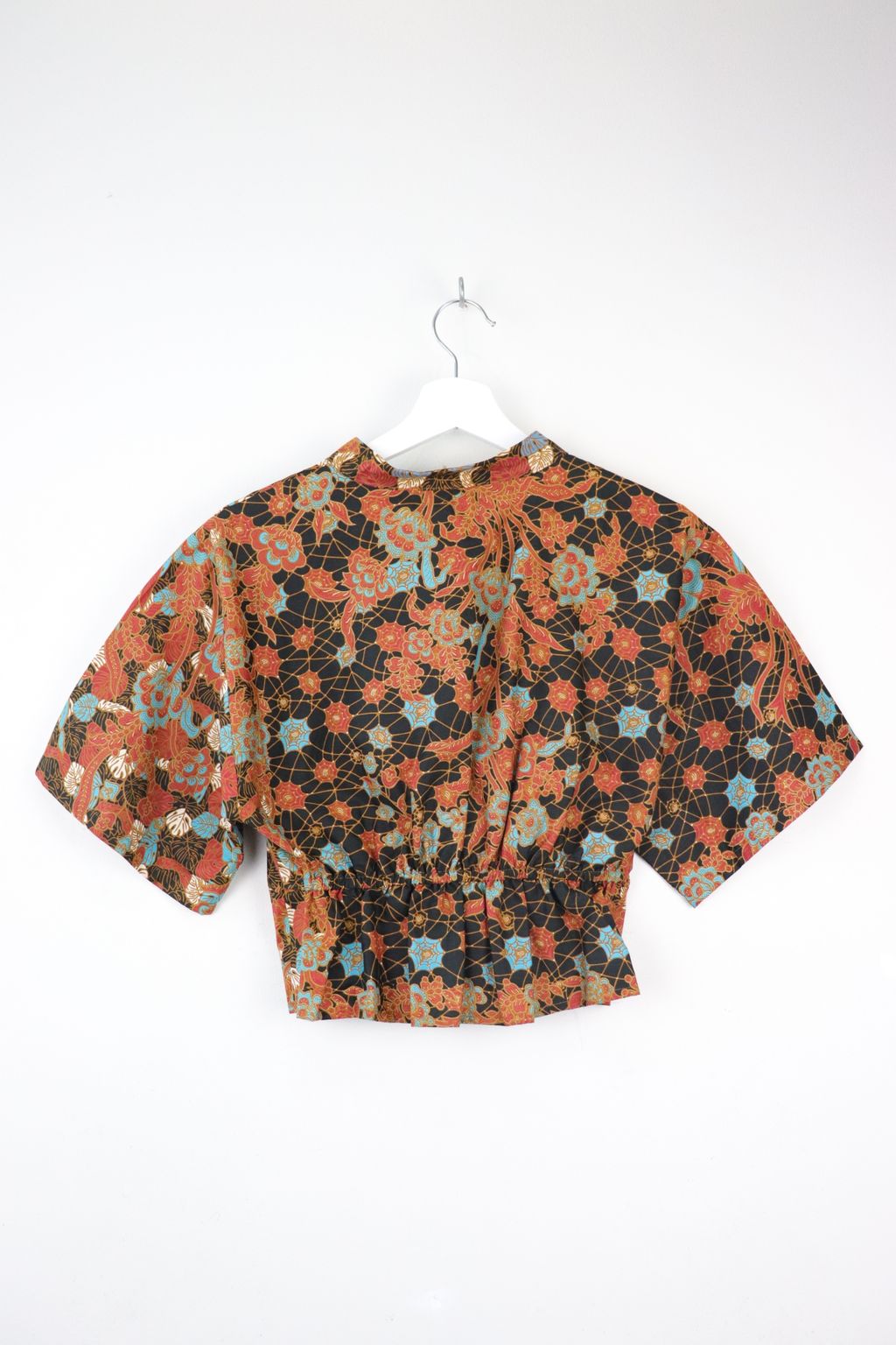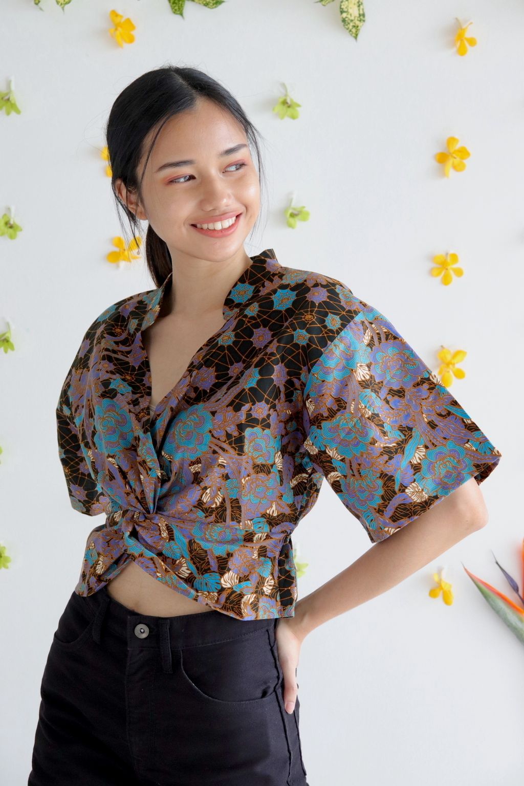 Featuring a mandarin collar and a twisted front, perfectly versatile.